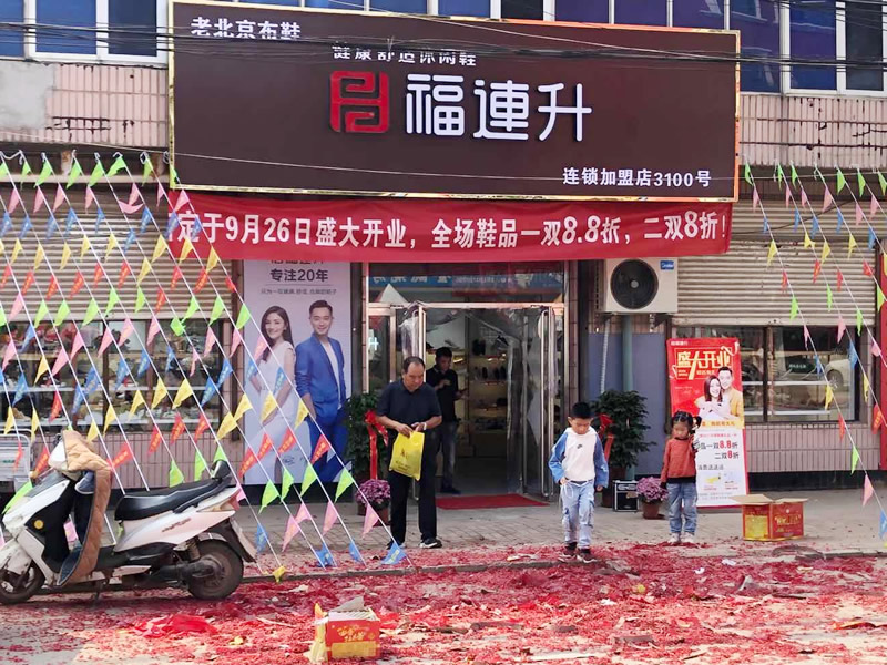 在此,福連升健康舒適休閑鞋(原福連升老北京布鞋)全體員工祝賀:福連升河北滄州河間臥佛堂店開業(yè)大吉、生意紅火、財源廣進(jìn)!誠邀各地有志之士加盟合作,共享輝煌!